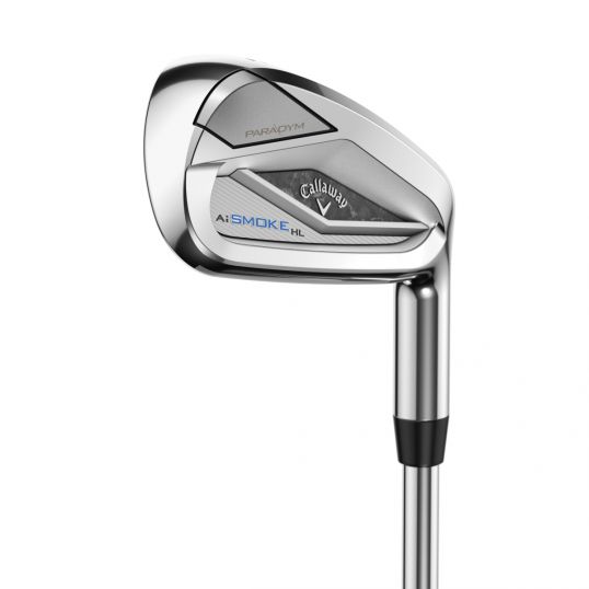 The Paradym Ai Smoke irons represent a total revolution in iron performance. The Ai Smoke family of irons utilizes the most advanced iron face in Callaway history: the Ai Smart Face. The Ai Smart Face is designed using real player data and advanced machine learning to create a series of sweet spots all over the face. The result is exceptional distance with improved dispersion. The HL (High Launch) model is made for golfers who need higher launch to maximize distance and hit more greens.